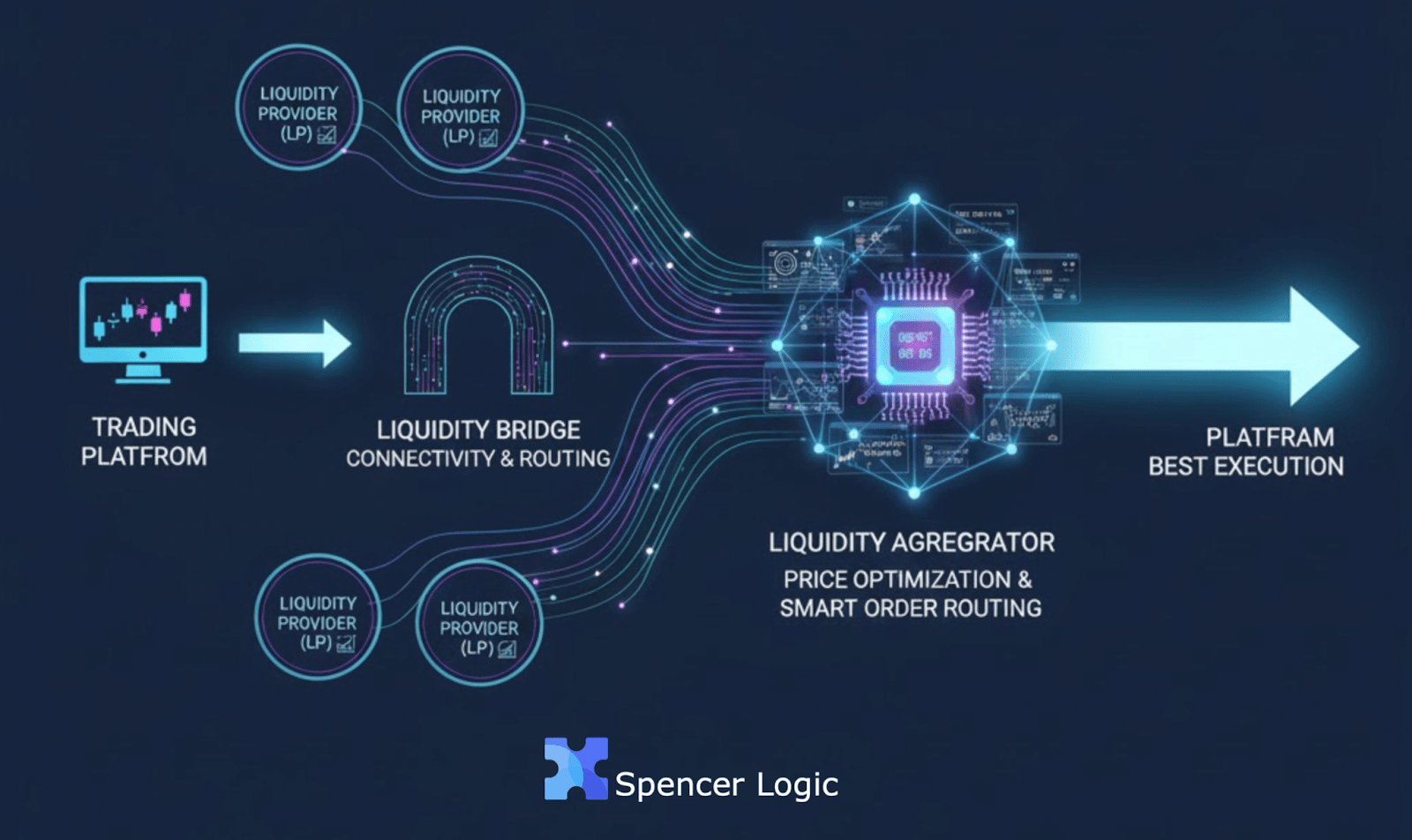 For emerging brokers, the path forward is clear: start with a solid bridging foundation, and evolve into aggregation as your liquidity relationships and trading volume grow. Together, these systems form the infrastructure that determines whether your brokerage can scale sustainably in an increasingly demanding market.At Spencer Logic, we provide an integrated Bridging & Aggregation Stack designed specifically for multi-asset brokers. Our technology delivers low-latency connectivity, real-time optimization, and flexible execution control — all from a single, unified platform. If you’re ready to enhance your execution and pricing architecture, explore our Bridging Solution and see how Spencer Logic helps brokers build faster, smarter, and more scalable infrastructures.